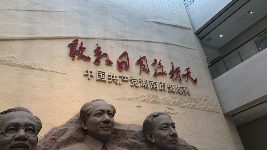 走进展厅,映入眼帘的是名为“潇湘魂”的毛泽东、刘少奇、任弼时伟人的雕像,三位伟人伟岸的形象近在眼前,令人倍感振奋,右侧中国共产党党旗鲜艳夺目,气氛庄重肃穆。在场的每一位同志都接受了一次深刻的党性教育和灵魂洗礼。