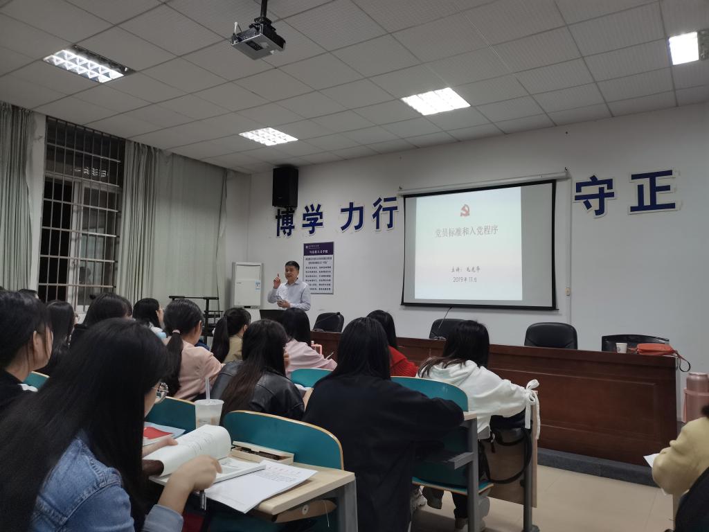 1111日晚,在云塘校区文科楼C202,我院2019年下期入党积极分子班进行了第三次党课学习,本次党课由校督察办督察专员毛光华老师主讲,37名入党积极分子参加学习。
