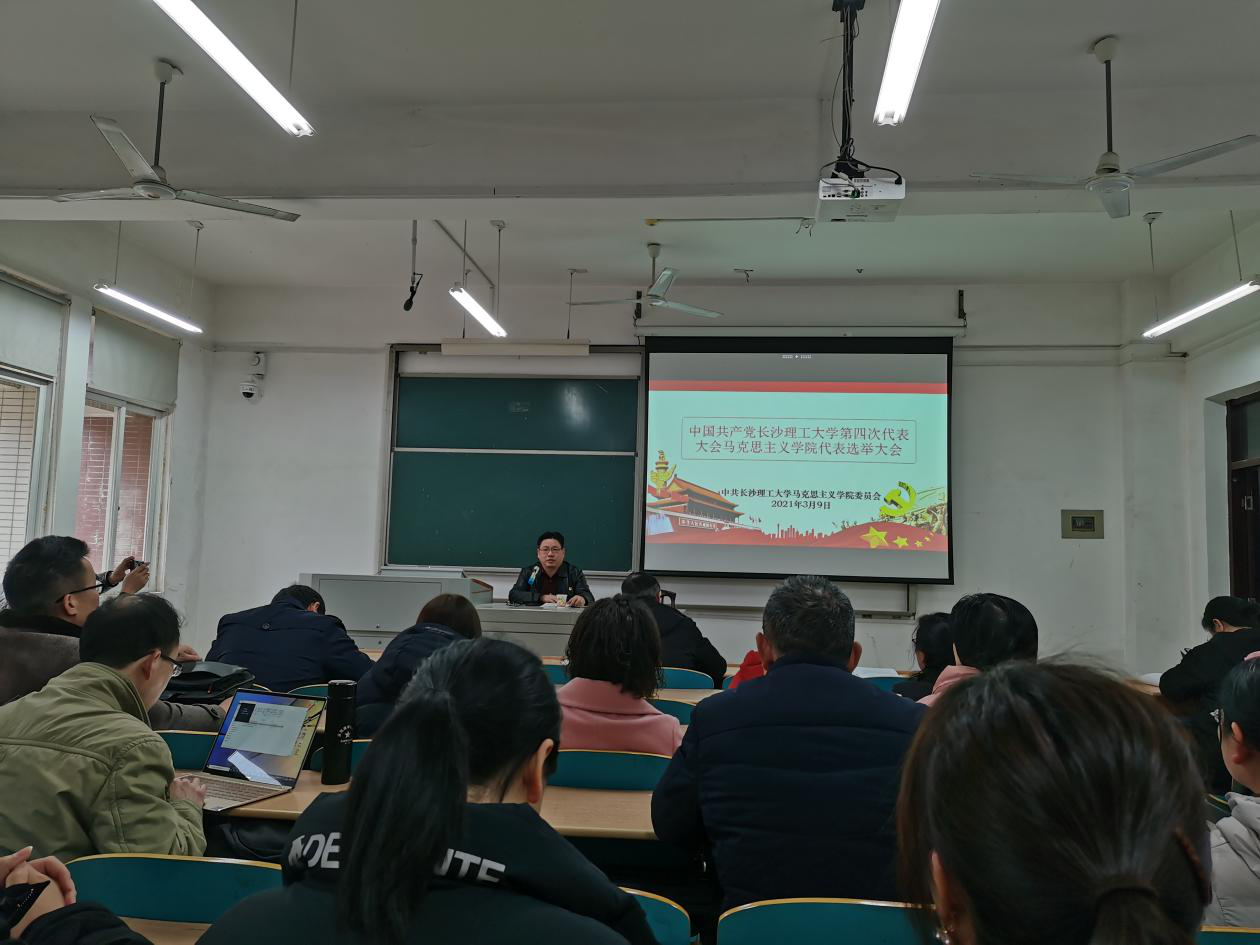 根据《关于选举中共长沙理工大学第四次代表大会代表的通知》等相关文件精神。3月9日下午,我院在文科楼B区401举行“党代会”代表选举大会。中共长沙理工大学第四届委员会委员、纪委书记候选人徐桂林参加了此次大会。会议由马克思主义学院党委书记易显飞教授主持,学院全体师生党员参加会议。