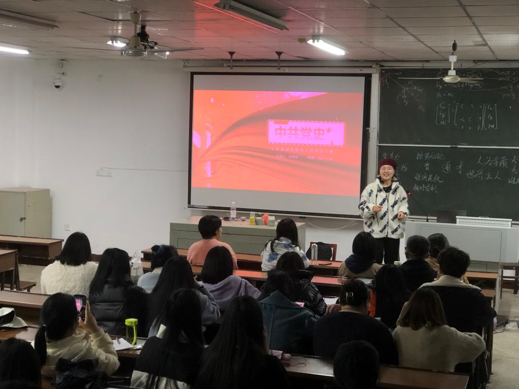 此次党课中,刘竹竹同志通过提问互动、经典影片播放、经典片段诵读、角色扮演等方式,依次对《新青年》的创办源头、主办成员、典型事迹进行了宣讲与阐释。在刘竹竹同志生动形象地讲解下,同学们深入学习了李大钊等人的在《新青年》中的重要论述、重要精神,深刻领悟了蕴含在其中的政治立场、战略思维,充分领会了知行合一、“红船精神”等的重大要义。
