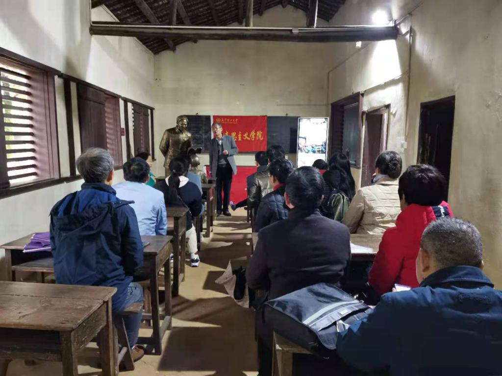 徐特立是伟大的共产主义战士、杰出的无产阶级教育家,是我国杰出的无产阶级革命家、教育家,被尊为“延安五老”之一,也是毛泽东和田汉等人的老师,是新中国教育事业的奠基人。中国化支部的党员和入党积极分子在徐特立故居重温入党誓词,为了学习党史、重温党史,特邀赖某深教授给全体支部党员上党课,此次党课由支部书记黄娟主持。赖教授生动地讲授了徐特立同志投身教育事业和革命事业的光辉一生,深刻地分析了他的“教育救国”理念,鼓励教育工作者向徐老学习伟大的教育精神。