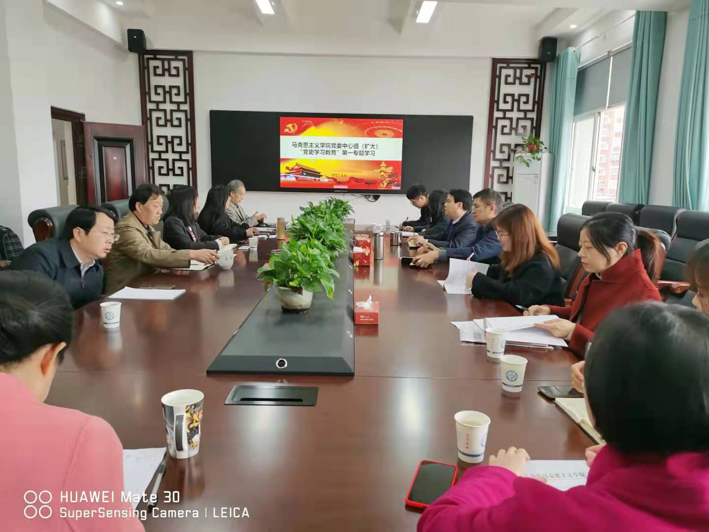 根据习近平总书记在党史学习教育动员大会上的重要讲话及中央、省委、省教育工委、校党委相关文件精神和部署安排,结合长沙理工大学马克思主义学院实际情况,马克思主义学院党委于2021年4月6日上午在云塘校区文科楼学院会议室召开学院党委中心组(扩大)“党史学习教育”第一专题学习。本次学习主题为“学史明理”专题,由马克思主义学院张可荣教授主讲。学院副科职及以上干部、各支部书记、学院工会主席、教授委员会主任、近2年入职的青年博士参与了本次专题学习。此次专题学习由学院党委书记易显飞教授主持。