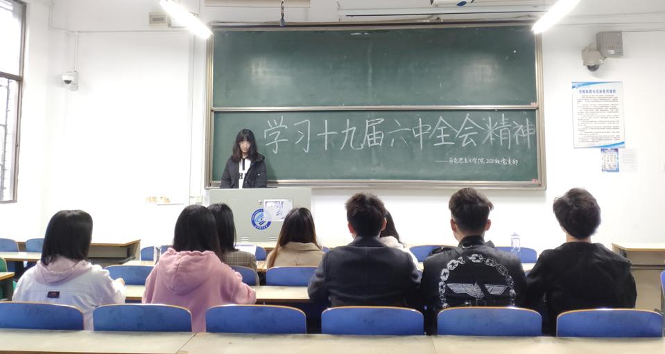 11月21日上午,我院2020级研究生党支部在金盆岭校区6教201教室召开全体党员大会,集中学习党的十九届六中全会精神,并开展了“发展刘曼柔、朱尚品为预备党员的支部讨论”大会。会议由党支部书记王静怡主持,2020级研究生全体党员参加本次会议。