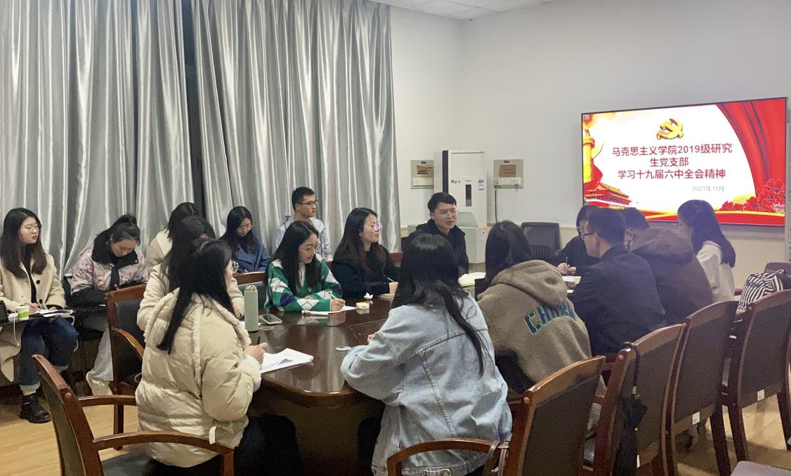 马克思主义学院2019级研究生党支部集中学习党的十九届六中全会精神