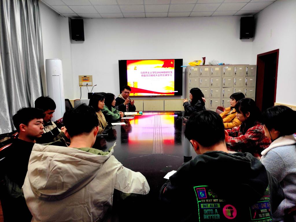 习近平总书记在十九大报告中提到:“初心和使命是激励中国共产党人不断前进的根本动力。”为加强党员同志的初心使命教育,为促进研究生支部的联系与交流,2021年12月9日,马克思主义学院2020级研究生党支部联合2021级研究生党支部开展“重温初心使命”党课学习,同时召开预备党员接收大会,本次预备党员接收对象为朱尚品。此次活动由2020级、2021级研究生党支部书记王静怡主持,并邀请了研究生宣讲团成员、体育学院研究生党员柏兴增同志为支部成员授讲,支部党员进行了深入的探讨交流学习。