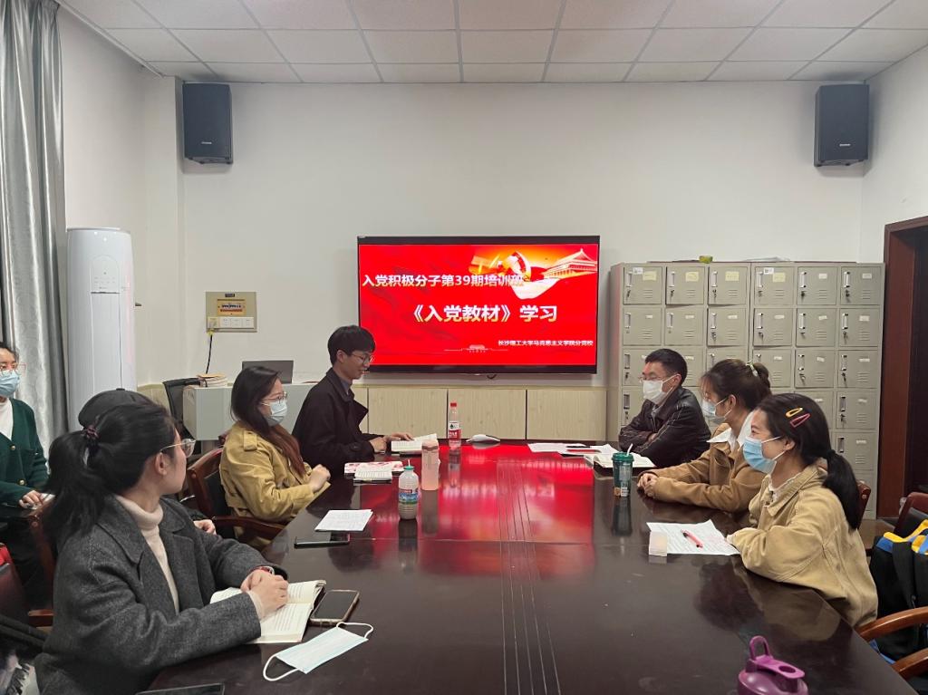 2022年4月18日晚19:00,马克思主义学院2022年上期入党积极分子班在金盆岭4教503教室开展对《入党教材》的集体学习。马克思主义学院2022年上期全体入党积极分子参加了此次《入党教材》的学习,党员代表杨珺、高瑞瑞、孙家琪、付圣莹负责监督。