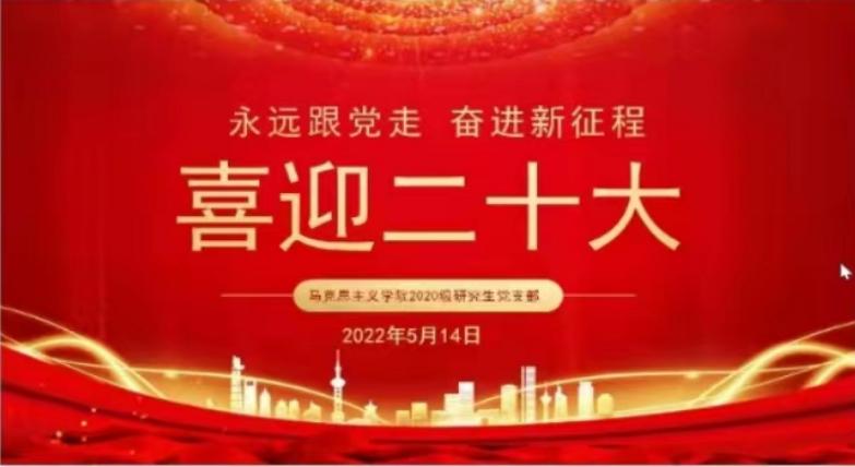 2022年5月14日15时,长沙理工大学马克思主义学院2020级研究生党支部开展“喜迎二十大”线上党课活动,参会人员为马克思主义学院2020级研究生党支部全体成员,党课由支部书记王静怡主讲。