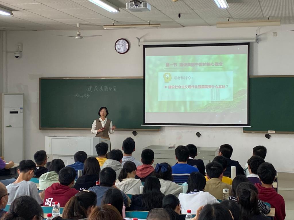 钟芙蓉老师围绕“建设美丽中国”教学主题,从决胜全面建成小康社会、进而全面建设社会主义现代化国家大背景出发,紧扣坚持人与自然和谐共生基本方略,以通俗易懂的“小康全面不全面,生态环境很关键”导入课堂,从“建设美丽中国的核心理念”、“建设美丽中国的制度保障”、“推动建设清洁美丽的世界”、“携手共建绿色美丽的家园”四个方面展开,合理引用古今中外论述人与自然紧密关系的经典文献,全面解读新时代生态文明建设思想、理论、制度和实践成果,充分彰显党和政府推动建设清洁美丽世界的中国智慧和中国方案,最后不失时机地激发出全体师生投身共建美丽家园的强烈责任感、浓厚意识和火热激情。本场培训公开课坚守学习践行习近平生态文明思想、携手共建美丽中国教学初心,注重政治性与学理性相统一,价值性与知识性相统一,理论性与实践性相结合,全面系统讲述教学内容,合理引用权威新颖的数据材料,适时穿插丰富多彩的视频资料和教学案例,有效运用手机投屏、实时问卷、翻转课堂等现代化教学手段,开展形式多样的多通道、创新性课堂互动,最后组织全场激情朗诵习近平总书记语录“人不负青山,青山定不负人”而圆满结束。