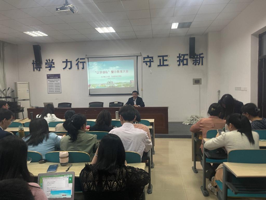 为切实增强全体教职工清廉意识,营造风清气正的从教环境,强化教师的责任担当,长沙理工大学马克思主义学院于2023年11月7日下午2点,在云塘校区文科C202室召开“以学谋私”警示教育大会。会议由学院党委书记陈万球教授主持,学院全体教职工参加。
