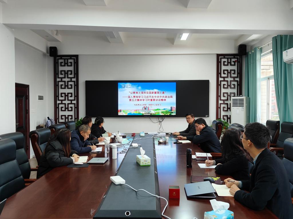 为深入领会习近平在中共中央政治局第五次集体学习时重要讲话精神,加快推进教育现代化与教育强国建设,强化教师的责任担当与能力培养,长沙理工大学马克思主义学院党委于2023年11月13日上午,在云塘校区文科楼马克思主义学院会议室开展“以教育之强夯实国家富强之基”主题学习会议。会议由学院党委书记陈万球教授主持,学院党委委员、挂职副院长和学院学术委员会主席参加本次主题学习活动。