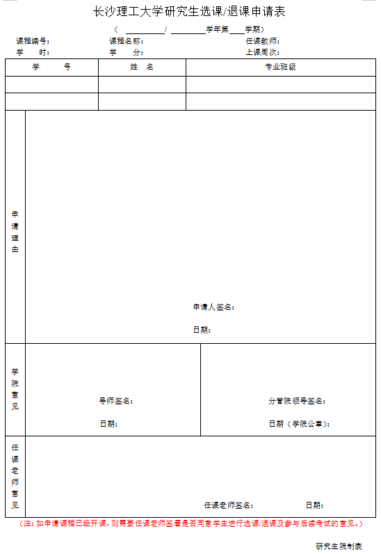 长沙理工大学研究生选课退课申请表(2022版)