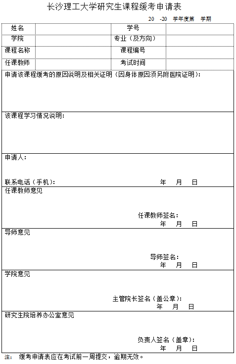 长沙理工大学研究生课程缓考申请表