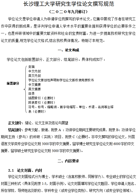 长沙理工大学研究生学位论文撰写规范(2020年版)