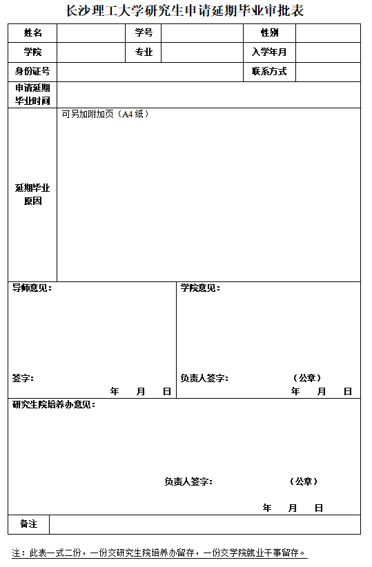 长沙理工大学研究生申请延期毕业审批表