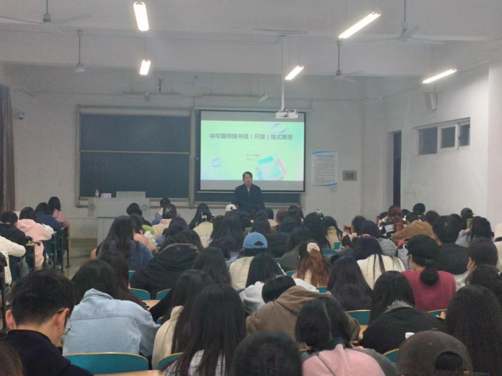 为弘扬中华优秀传统文化,提高学生对中国传统书信格式的认识,马克思主义学院文贵全副教授于2023年11月27日晚19点,在云塘校区文科楼B203作了主题为《中国传统书信(尺牍)格式概要》的通识教育讲座。我院全体研一、研二同学参加了此次讲座。