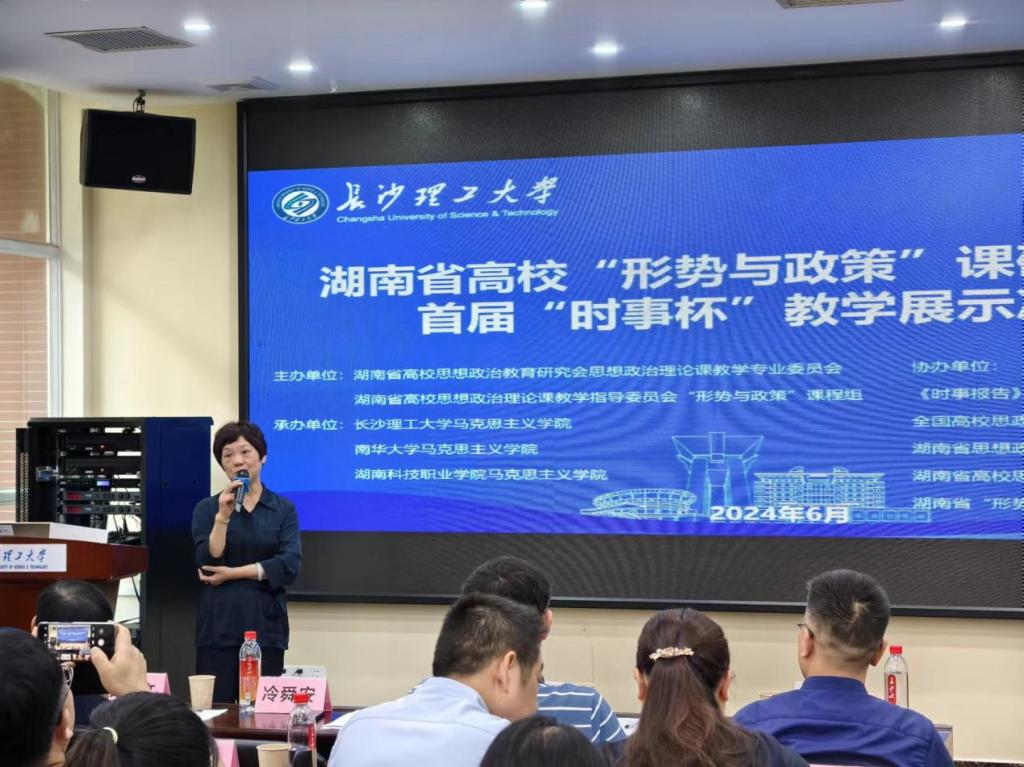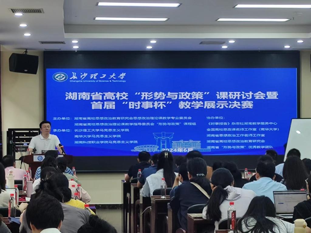 为深入学习贯彻党的二十大精神,坚持不懈用习近平新时代中国特色社会主义思想铸魂育人,提升湖南省“形势与政策”课教师的教学水平和教学能力,提高“形势与政策”课的针对性和实效性,湖南省高校“形势与政策”课教学研究会决定举行湖南省“形势与政策”课教学展示“时事杯”竞赛活动。此次活动由湖南省高校思想政治教育研究会思想政治理论课教学专业委员会、湖南省高校思想政治理论课教学指导委员会“形势与政策”课程组主办,由长沙理工大学马克思主义学院、南华大学马克思主义学院和湖南科技职业学院马克思主义学院承办,由《时事报告》杂志社湖南教学服务中心、全国高校思政课名师工作室(南华大学)、湖南省思想政治工作名师工作室和湖南省高校思想政治教育研究会协办。