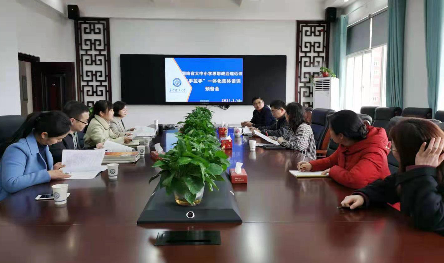 为深入学习贯彻习近平总书记在学校思想政治理论课教师座谈会上的重要精神、推动习近平新时代中国特色社会主义思想进教材进课堂进学生头脑,大力推进我省大中小思政课一体化建设,并且传达湖南省教育厅文件精神,长沙理工大学马克思主义学院于2021年3月12日下午两点半,在云塘文科楼六楼马克思主义学院会议室召开关于开展大中小学思想政治理论课“手拉手”一体化集体备课预备会。