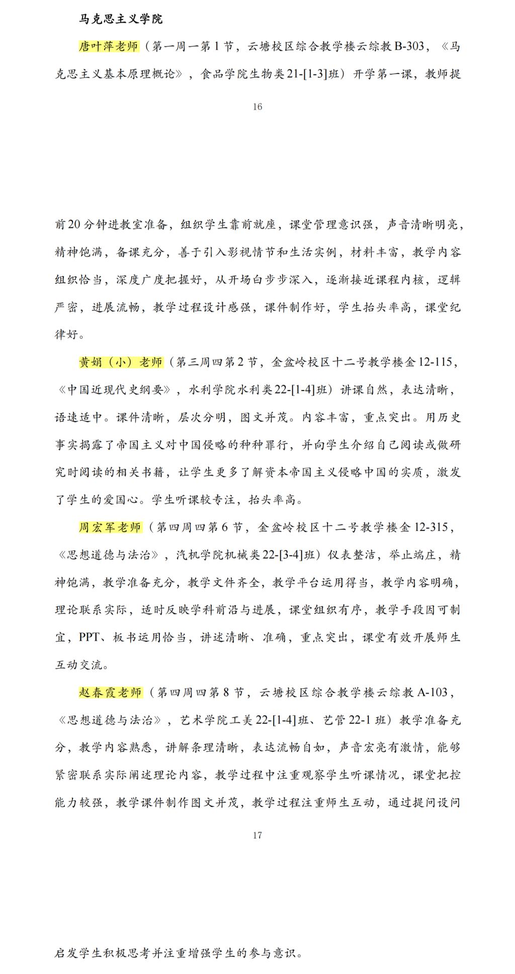 4月30日,长沙理工大学发布《本科教学督导信息》(23年第一期)简报。我院唐叶萍、黄娟(小)、周宏军、赵春霞、罗月婵、卿定文等六位教师获评长沙理工大学“课堂教学优秀典型”。