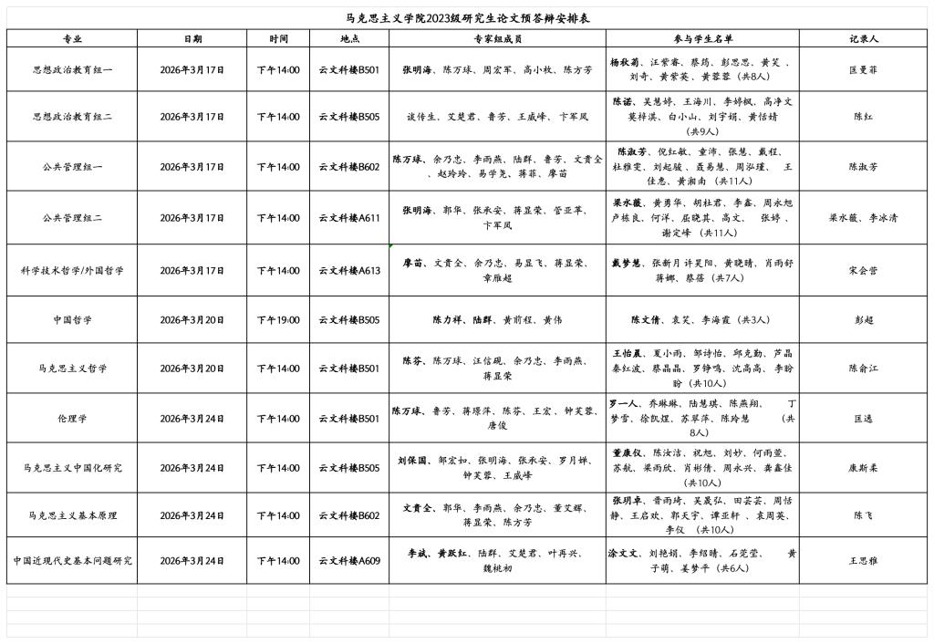 2026年马克思主义学院2023级研究生预答辩安排表