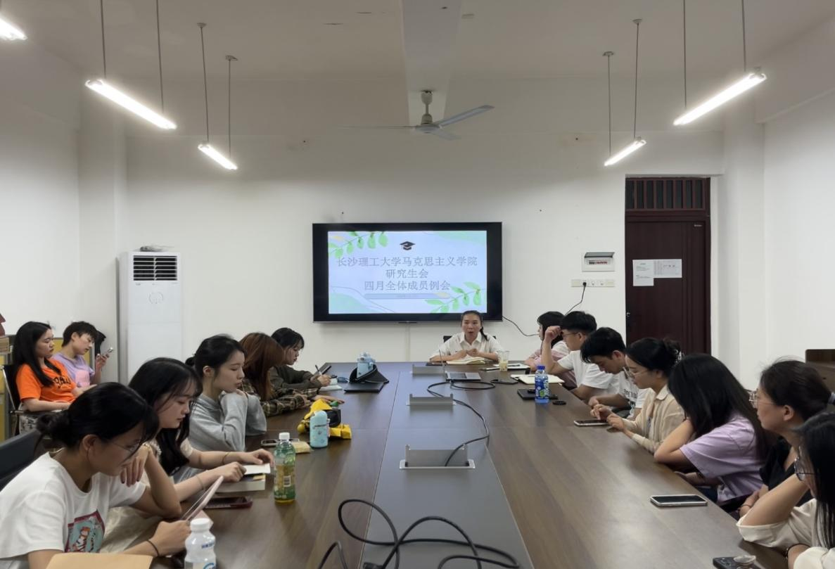 2023年4月20日晚上19点,长沙理工大学马克思主义学院研究生会在云塘校区文科楼A513召开四月全体成员例会。本次会议由辅导员曾蓓主持,院研会全体成员参加了此次会议。