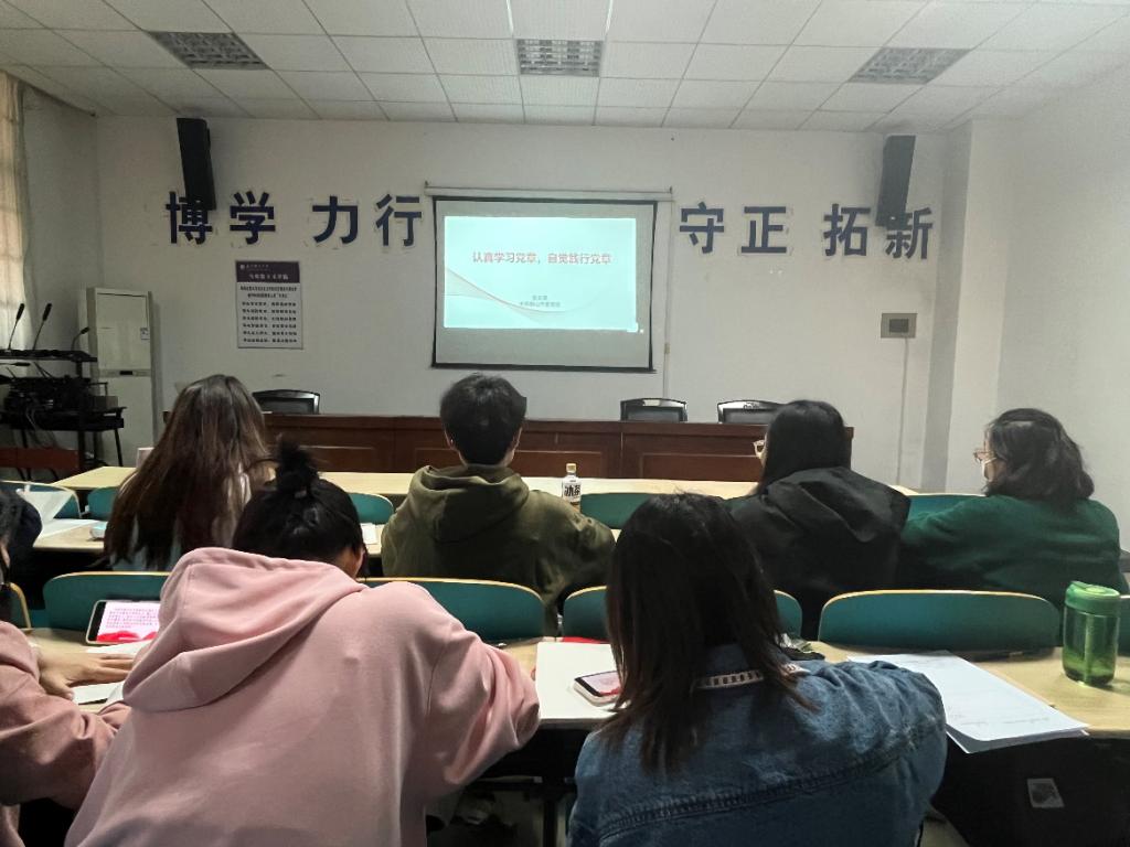 为深入学习贯彻党的二十大精神,领悟党的各项章程,培养学生爱党爱国情怀。2023年5月7日上午8点至12点,马克思主义学院在云塘校区文科楼C202组织2023年上期发展对象培训班全体同学集中收看《习近平新时代中国特色社会主义思想》及《认真学习党章 自觉践行党章》网络视频课程。本次党课学习分别由党员代表阮曼、付圣莹及高瑞瑞、孙佳琪负责监督。