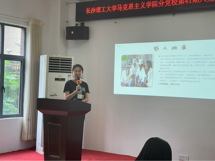 阅读中感悟,分享中成长。学员们集中阅读了抗战书籍并就书中的典型抗战事迹进行分享。分享环节,同学们的分享形式多样,引人入胜。杨璧源、张敏等8位学员进行了动情讲述。杨璧源同学读到了《悲歌三湘:湖南五次会战》中的日军暴行后,忍不住哽咽地说道:“一定不能够让我们的后人忘记这段历史。”张源、钟娅茹、张卓等12同学则结合视频生动地讲述了张思德、王志胜、狼牙山五壮士、杨靖宇、赵一曼、刘胡兰、陈延年等党员的光辉事迹。在听完大家的分享后,学员刘尹靖表示:“在同学们声情并茂的分享中,我们的爱国之情油然而生,更加坚定了继承和发扬抗日战争时期的奋斗精神,用实际行动为国家做出自己的贡献的决心。”