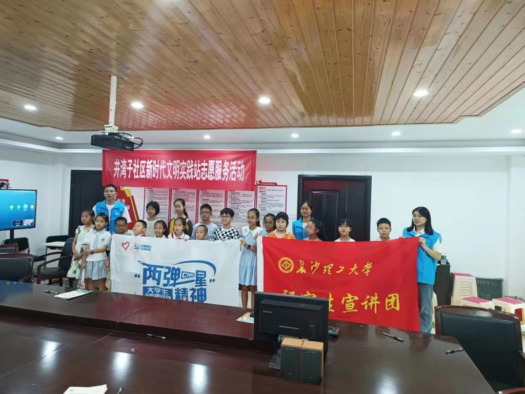 “老师,我知道!‘两弹’是指核弹、导弹,‘一星’是指人造卫星。”“老师,我来,他肯定就是邓稼先爷爷!”7月26日,长沙理工大学研究生宣讲团前往长沙市天心区青园街道井湾子社区开展“两弹一星”精神宣讲。