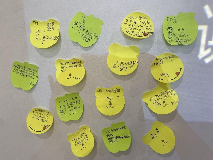 小小的便利贴传达大大的心中梦。“我要画一个核弹,可以......”“长大后,我也要为国家出一份力!”在宣讲结束后,小朋友们用便利贴画出了自己心中所想的导弹,写下了自己无尽的感想与未来的梦想。在一片掌声中,小朋友们都一一上台进行粘贴并展示自己的小小作品,现场气氛十分热烈。