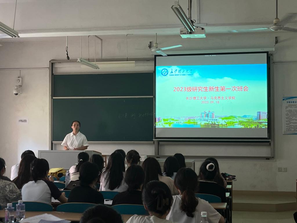 2023年9月18日下午16:40,马克思主义学院在文科楼B303召开2023级研究生新生第一次班会。本次会议由马克思主义学院辅导员曾蓓老师主持,2023级全体研究生参加。