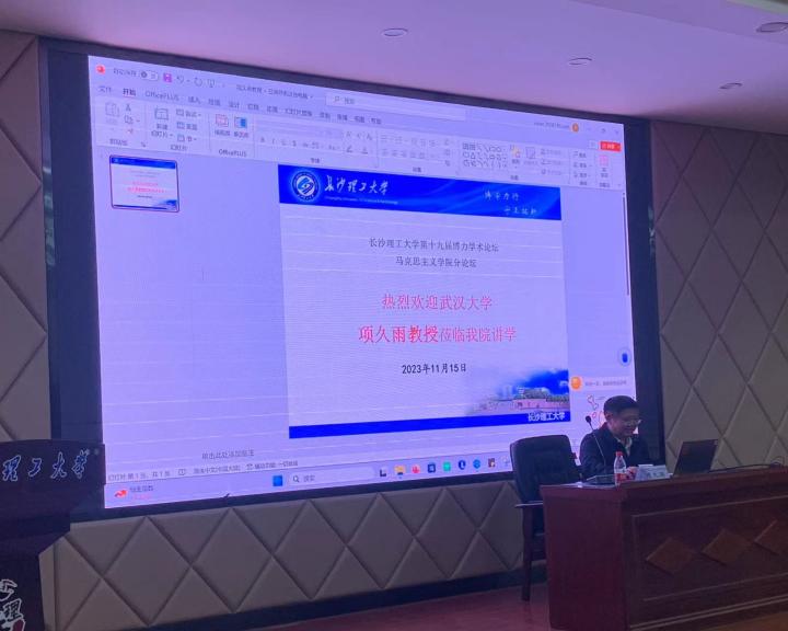 11月15日下午,国家级重要人才计划入选人、国家社科基金重大项目首席专家、武汉大学思想政治教育研究院执行院长、博士生导师项久雨教授来到雷竞技官网云塘校区文科楼A200室,为学校第十九届博力学术论坛马克思主义学院分论坛主讲了一场题为“中国式现代化的继往与开来——兼谈学术研究选题”的学术讲座。马克思主义学院院长张明海教授、副院长李雨燕教授、文贵全副教授、陈方芳博士等学院教师与学院研究生100余人参加了本次讲座。