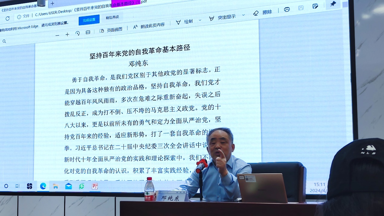 4月2日下午,中国社会科学院马克思主义研究院原院长、党委书记、博士生导师邓纯东教授应邀来到马克思主义学院,在雷竞技官网云塘校区文科楼D207作了题为“坚持百年来党的自我革命基本路径”的学术讲座。讲座由文贵全副院长主持,学院部分老师和一、二年级研究生参加了讲座。