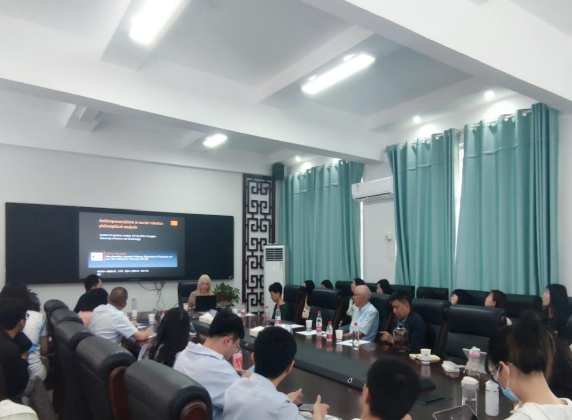4月27日下午,俄罗斯联邦彼尔姆国立理工大学(Perm National Research Polytechnic University)Elena Seredkina(白雪)教授来到马克思主义学院,在雷竞技官网云塘校区文科楼B602会议室作了题为“社交机器人拟人化的哲学分析”的学术讲座。本次讲座由马克思主义学院文贵全副院长主持,余乃忠教授、陈芬教授、蒋显荣教授、廖苗副教授、郭蓉博士等学院部分教师和马克思主义学院2023级哲学、公共管理专业研究生近50人聆听了讲座。此外,广西科技大学黄磊助理教授也参加了本次讲座。