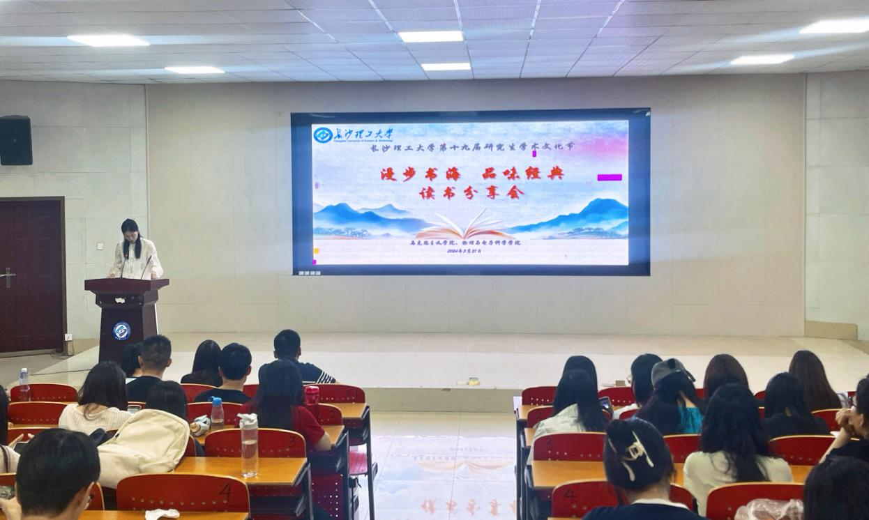 5月31日晚,由长沙理工大学研究生工作部主办,马克思主义学院研究生会和物理与电子科学学院研究生会联合承办的第十九届研究生文化节“漫步书海,品味经典”读书分享会决赛在云塘校区文科楼A100报告厅成功举行。