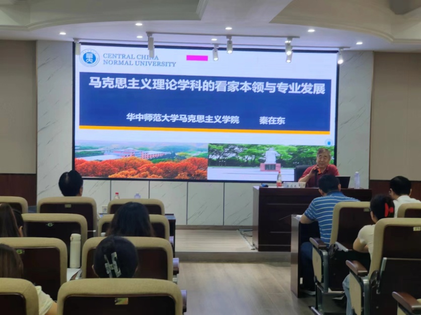 2024年6月15日下午,教育部高校马克思主义理论类专业教指委委员、华中师范大学马克思主义学院原院长、博士生导师秦在东教授应邀来到马克思主义学院,在雷竞技官网云塘校区文科楼D207报告厅主讲了“马克思主义理论学科的看家本领与专业发展”的学术讲座。本次讲座由我院张明海院长主持,文贵全副院长、王威峰副教授、陈方芳博士等学院教师和研究生近100人聆听讲座,此外,湖南文理学院党委副书记李红革教授也应邀参加了讲座。