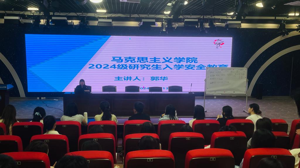 为全面强化学生安全意识,筑牢安全防线,帮助新生系好入校后“第一粒安全纽扣”。9月13日上午10:40,马克思主义学院在文科楼B300报告厅开展入学安全教育专题学习。本次学习由马克思主义学院副院长郭华主讲,内容包括人身安全、财产安全、消防安全、食品安全、网络安全及国家安全六个方面,2024级全体研究生参加。