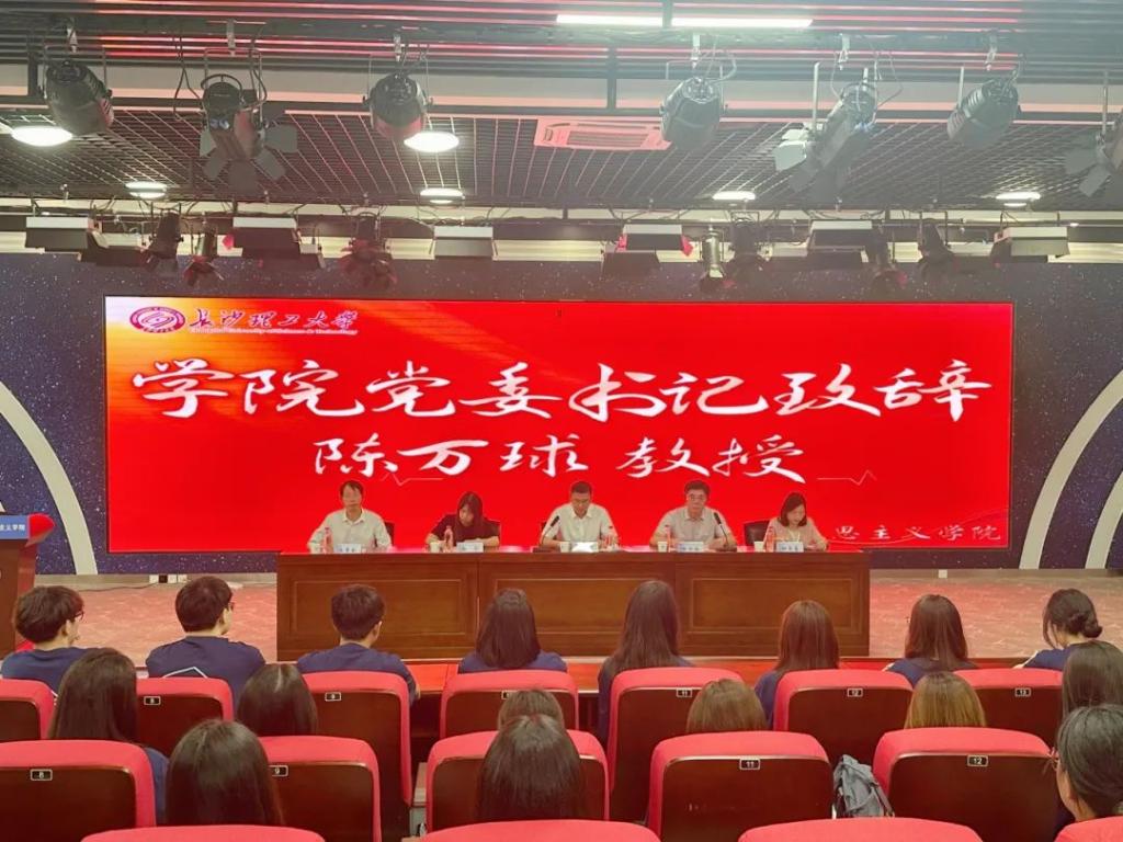 学院党委书记陈万球在致辞中,向新入学的同学们表达了衷心的祝贺和热烈的欢迎。他围绕“我是谁”、“我从哪里来”、“我要到哪里去”三个深刻问题,鼓励同学们在马克思主义理论的光辉指引下,明确身份使命,学习革命先辈精神,将个人理想融入国家和民族的事业中,成为马克思主义的坚定信仰者和实践者。陈书记的讲话深刻而富有启发性,赢得了在场师生的热烈掌声。