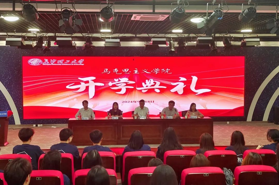 2024年9月18日上午9时,长沙理工大学云塘校区文科楼B300报告厅举行马克思主义学院2024级研究生开学典礼。本次典礼由马克思主义学院院长张明海主持,学院党委书记陈万球、副院长郭华、副院长钟芙蓉、副院长文贵全,以及科研与研究生办公室主任杨力铮、学生工作办公室主任曾蓓、研究生导师代表、老生代表和全体新生共同见证了这一重要时刻。