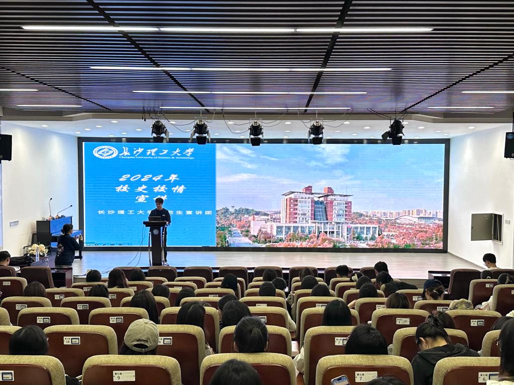 2024年11月13日晚上19:00,以“回首峥嵘岁月,我与长理共青春”为主题的2024级研究生新生校史校情宣讲会,在云塘校区建筑艺术楼A101报告厅开展。此次宣讲会由长沙理工大学研究生宣讲团承办,研究生宣讲团成员陈俞江主讲,马克思主义学院、设计艺术学院全体2024级研究生新生参加。