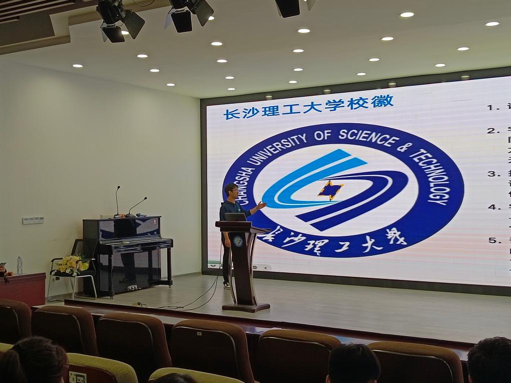 此次宣讲会由“建校前身”、“建校发展”、“长理优秀教师及校友事例”和“长理优秀个人及团队代表故事”四个部分组成。第一部分,由校歌、校徽讲解引入,介绍了长沙理工大学的建校前身、合并历程。即由原交通部直属的长沙交通学院和原电力公司直属的长沙电力学院合并建成。第二部分,则通过重大时间节点和重大事件来讲述了学校融合发展二十年的历史轨迹。时至今日,经过全体师生的不懈努力,在2024年,长沙理工大学入榜2025年泰晤士高等教育世界大学排名世界千强高校。第三部分,主要介绍了以膨胀土技术攻克公路癌症的郑建龙院士、“师德标兵”张新华老师、让思政课寓“理”于“情”的钟芙蓉老师以及在和病魔斗争中为教育事业奉献一生的周骞老师等长理优秀教师的故事。除此之外,还介绍了奔走在世界各地的榜样校友们,比如活跃在港珠澳大桥这项世界级工程中的 “长理人”——长沙交通学院85级路桥系校友余烈、96级机电专业校友徐永钢和02级交通工程专业校友张鸣功等。长理优秀教师、校友坚守初心和使命,用实际行动践行校训,发扬“铺路石”精神。第四部分,大家了解了“由专科生到博士生的蜕变,走上防灾减灾的科研之旅”的交通运输工程学院道路与铁道工程专业2019级博士生蒋煌斌、“战胜病魔、勇于创新拥有6项专利和软件著作权”的水利与环境工程学院2019级博士研究生邹勇松的故事。同时,优秀学子团队研究生志愿支教队、红色桥梁寻访实践团的故事也让大家更深刻的体会了团队的力量。在个人奋斗中体现价值,在集体合作中追求进步,这就是长理优秀个人、团队传递给大家的信念。最后,本次宣讲会在与研究生新生的互动问答环节中走向尾声。