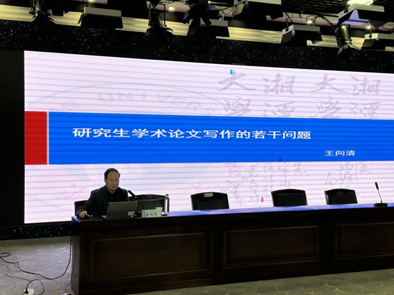 2024年10月29日下午14:30,湘潭大学马克思主义学院二级教授王向清应邀莅临我院,在雷竞技官网云塘校区文科楼B300报告厅就 “研究生学术论文写作的若干问题”开展了一场精彩的学术报告。本场报告由马克思主义学院副院长郭华主持,学院教师代表及研一、研二研究生参加。