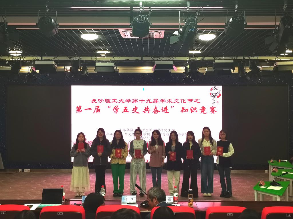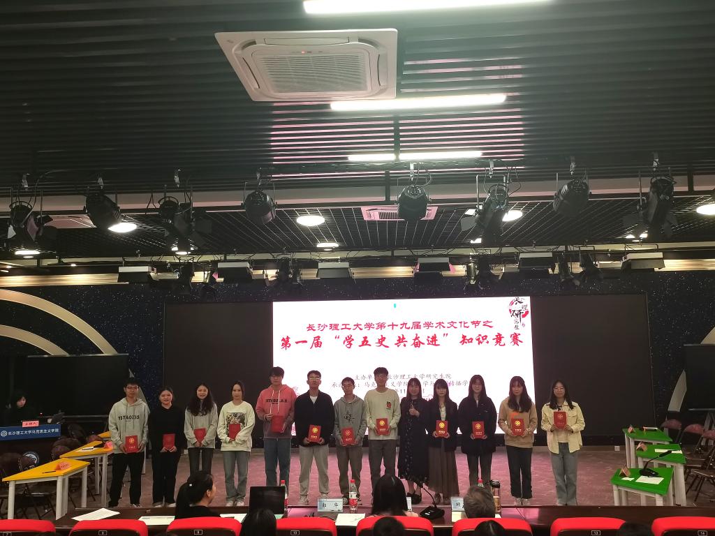经过六支队伍三轮的激烈角逐,长沙理工大学研究生第一届“学党史,共奋进”知识竞赛决赛的获奖名单出炉:马克思主义学院“你说的都队”获得一等奖;外国语学院“从容应队”、文学与新闻传播学院“超能陆战队”获得二等奖;马克思主义学院联合文新学院“大润发杀鱼队”、文学与新闻传播学院“章鱼小丸子队”、交通运输工程学院“勿忘火锅队”获得三等奖。