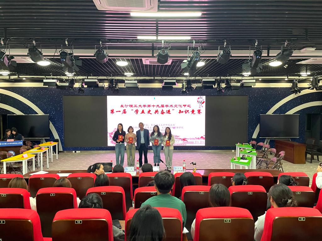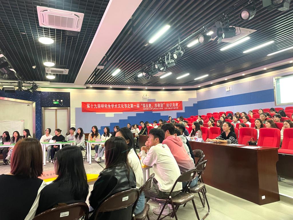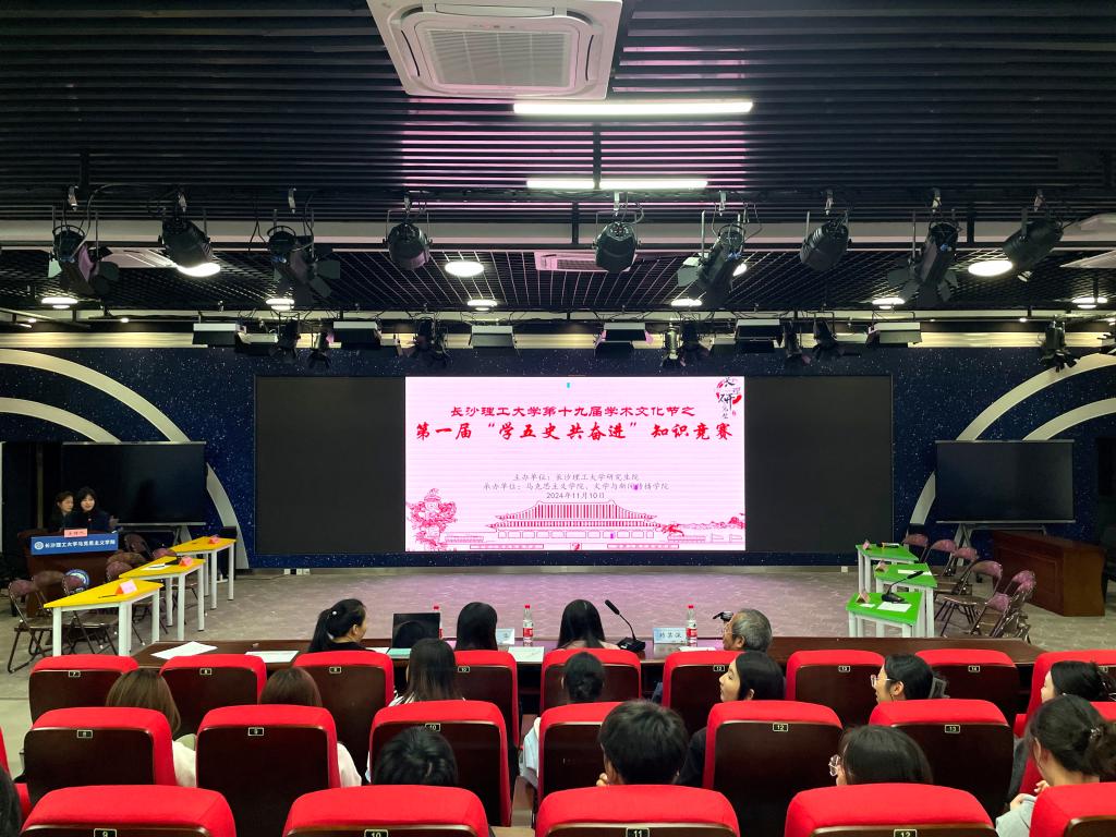 2024年11月10日晚19:00,由长沙理工大学研究生院主办,马克思主义学院和文学与新闻传播学院承办的校研究生第一届“学党史,共奋进”知识竞赛决赛在云塘校区文科楼B300报告厅举办,本次出席的嘉宾有文学与新闻传播学院党委副书记刘莎,马克思主义学院副院长郭华、副教授赖某深和学工办主任曾蓓,以及各学院参赛学生和现场观众共计100余人。