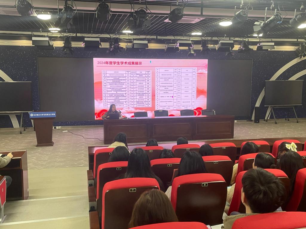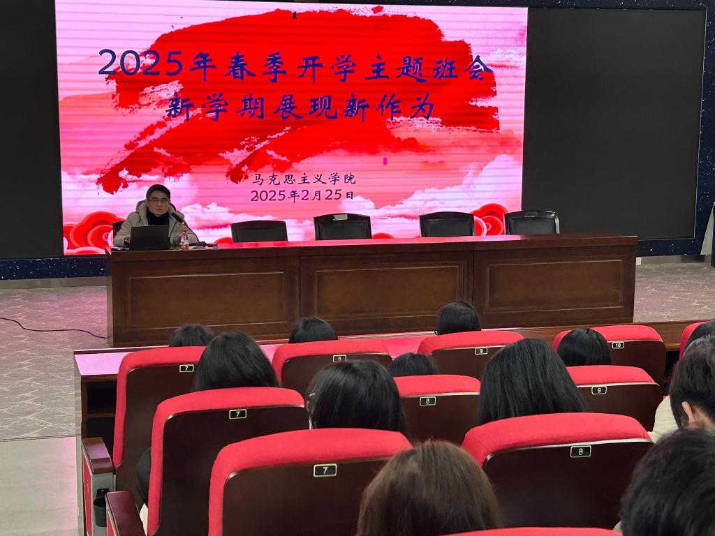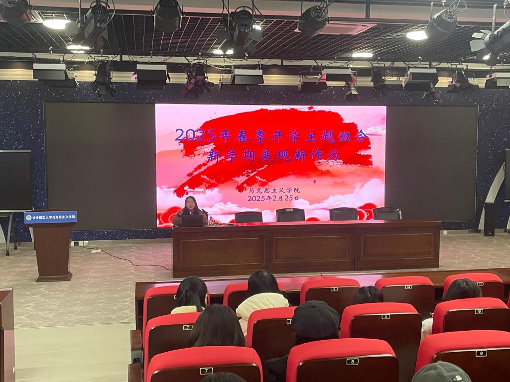 为全面学习宣传贯彻习近平总书记关于教育的重要论述和全国、全省教育大会精神,坚持立德树人根本任务,全面掌握学生思想动态,促进广大学生以良好的精神风貌投入新学期的学习生活。2025年2月25日,长沙理工大学马克思主义学院按年级分批在文科楼B300报告厅召开了春季开学主题班会。班会以“新学期展现新作为”为主题,围绕理想信念教育、学业教育、日常教育和心理健康教育四个部分展开。会议由学院学工办主任曾蓓主持,党委副书记李晓、全体研究生参加。