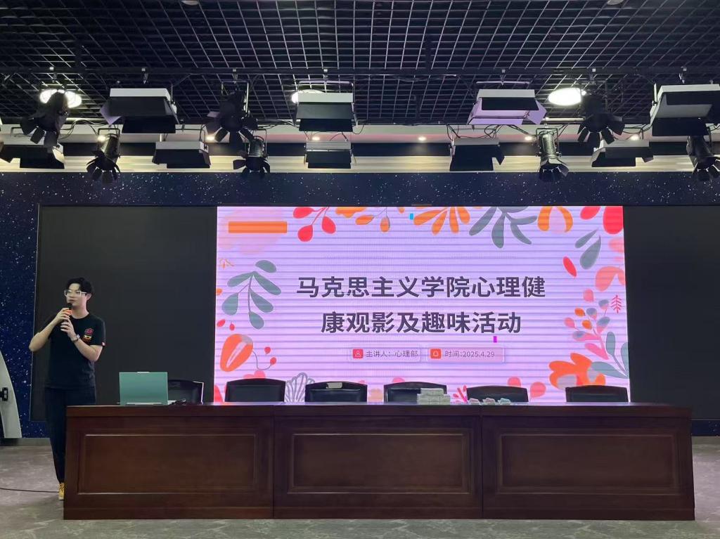 2025年4月29日晚19:00,长沙理工大学马克思主义学院在云塘校区文科楼B300报告厅举行了“心灵之约,光影同行”心理健康短片观影及趣味活动。本次活动由院研究生会心理部关智建、粟蓓佳主持,2024级全体研究生参加。