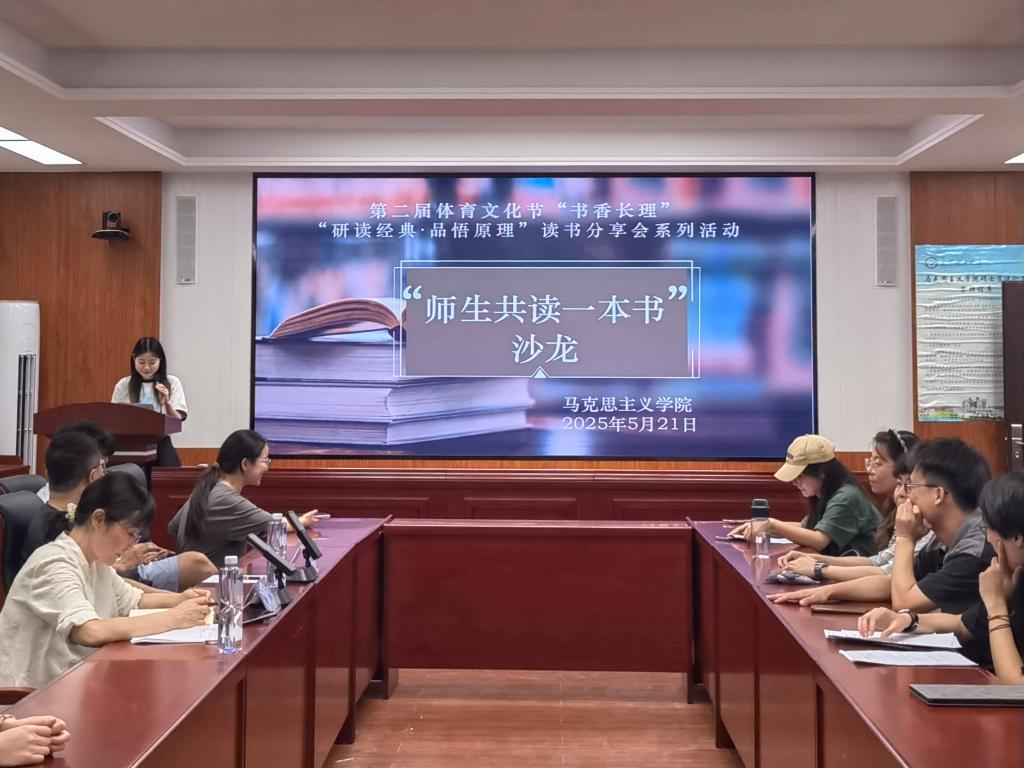 2025年5月21日晚上19:00,马克思主义学院在长沙理工大学云塘校区文科楼B501会议室,举办第二届体育文化节“书香长理”之“研读经典·品悟原理”读书分享会活动。本次活动以“师生共读一本书”的形式开展,由马克思主义学院陆群教授、章雁超老师作为领读人,2024级研究生童冰欣担任主持,2024级哲学专业全体研究生参加。