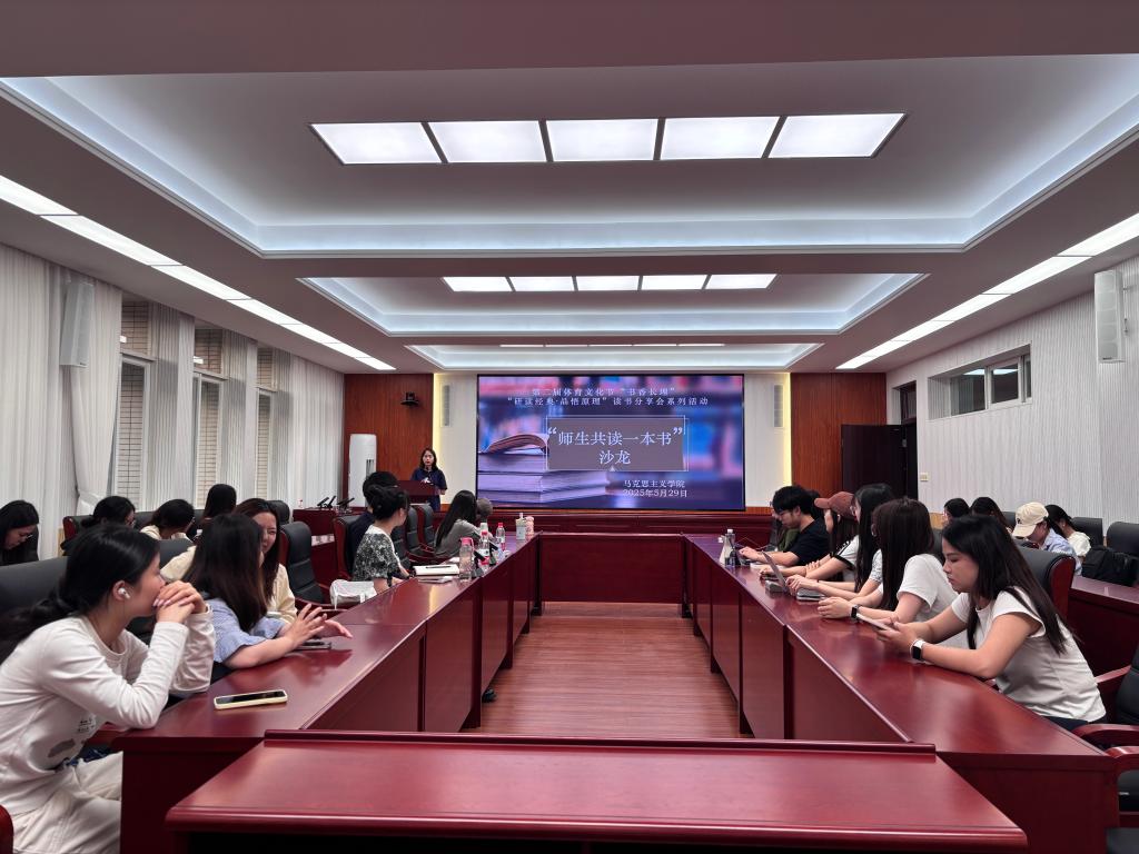 2025年5月29日晚19:00,马克思主义学院在长沙理工大学云塘校区文科楼B501会议室,举办第二届体育文化节“书香长理”之“研读经典·品悟原理”读书分享会活动。这是第二场“师生共读一本书”沙龙,由王威峰副教授、陈乡老师担任领读人,研一学生陈红担任主持,2024级马克思主义理论专业全体研究生参加。