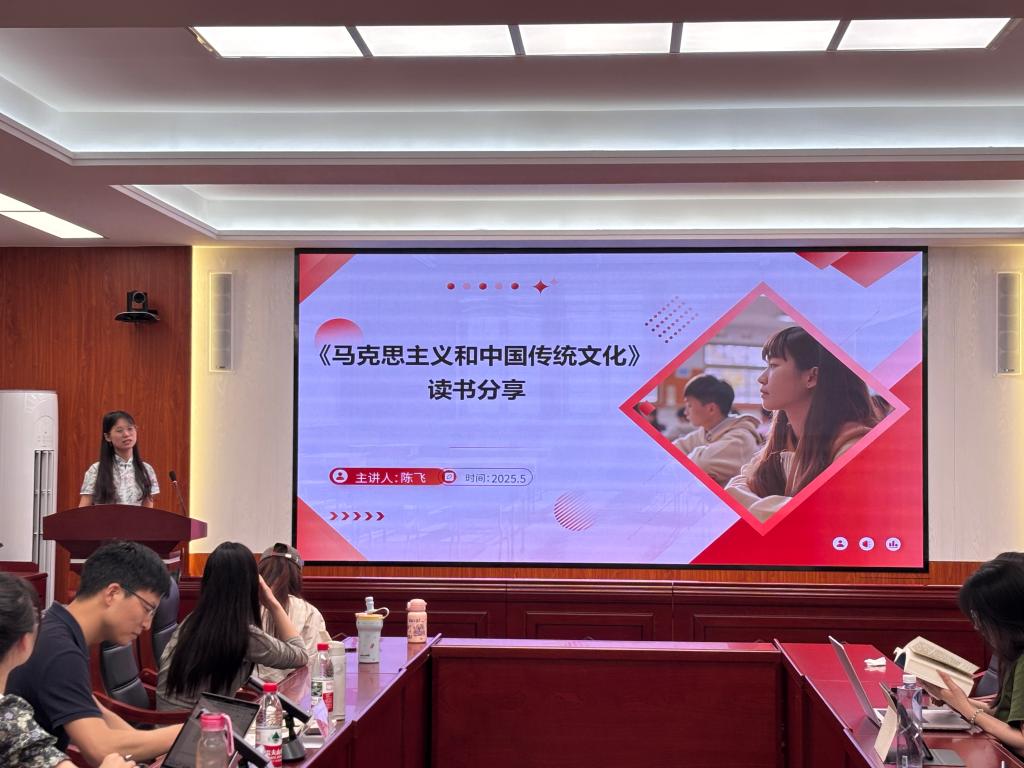 本次活动共有五位同学进行分享。张嫚玉分享了特里·伊格尔顿的《马克思为什么是对的》,她从驳马克思主义乌托邦论和终结论入手,对其基本内容进行详细介绍,并指出马克思主义是“不可超越的哲学”;张露尹分享了张岱年先生的《中国文化精神》,她围绕该书从中国文化论争的历史脉络到传承中国文化基本精神展开讲解,重点阐释了刚健有为、和与中、崇德利用、天人协调这些中国文化基本精神的要素;石江威分享了陈旭麓先生的《近代中国社会的新陈代谢》,围绕著书背景、书籍目录、作品分析、核心内容这四个部分展开,最后总结了自身阅读的最大收获就是认识到历史变革的复杂性远超非此即彼的叙述;肖淑仪分享了陈先达先生的《马克思主义和中国传统文化》,首先详细讲解了正确处理马克思主义和中国传统文化的关系,再通过播放孔夫子与马克思的对话视频,强调了马克思主义与中国传统文化“两个结合”的重要性;陈飞同样分享了《马克思主义和中国传统文化》一书,她主要聚焦于马克思主义与传统文化的因缘、融合路径,解读了书中的重要论述摘抄,并引导大家从全新的视角去思考马克思主义和中国传统文化的关系。