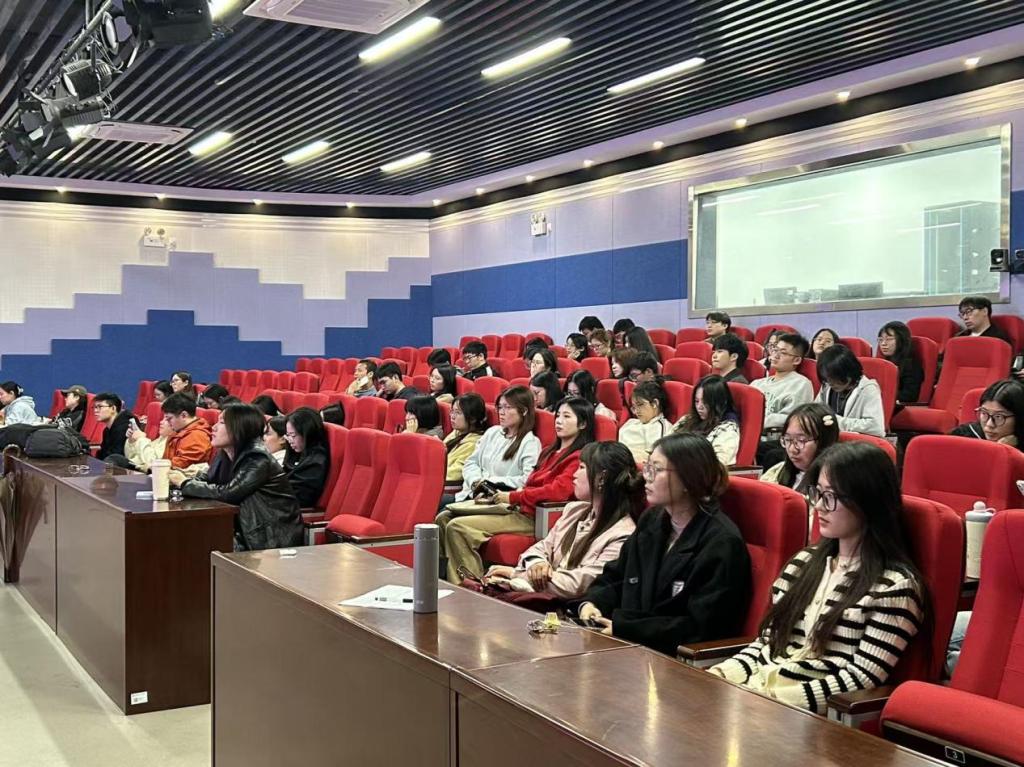 为明确相关支持政策与实践路径,进一步激发学生创新创业热情,2025年10月30日下午17: 00,马克思主义学院在云塘校区文科楼B300报告厅开展“背上双肩包,来湖南创业吧!”创业主题班会。班会由马克思主义学院学生工作办公室主任、辅导员曾蓓主持,2025级全体研究生参加。