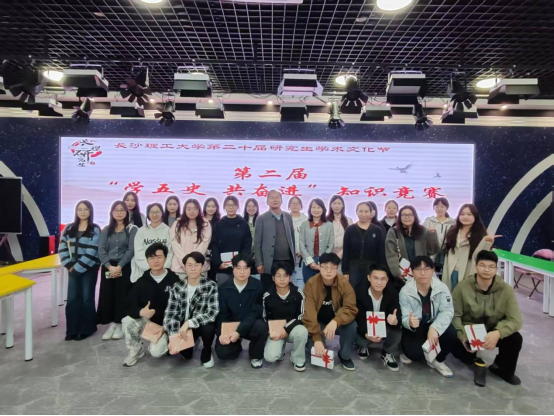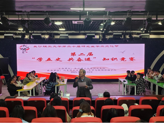 2025年11月13日晚7:00,由长沙理工大学研究生院主办,马克思主义学院、文学与新闻传播学院共同承办的第二届“学五史,共奋进”研究生知识竞赛决赛,在云塘校区文科楼B300报告厅顺利举行。文学与新闻传播学院党委副书记刘莎,马克思主义学院副教授赖某深、学工办主任曾蓓受邀出席,来自各学院的参赛选手与观众百余人齐聚一堂,参与了本次决赛。