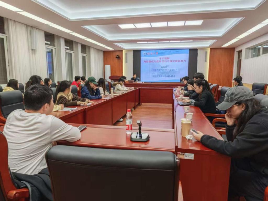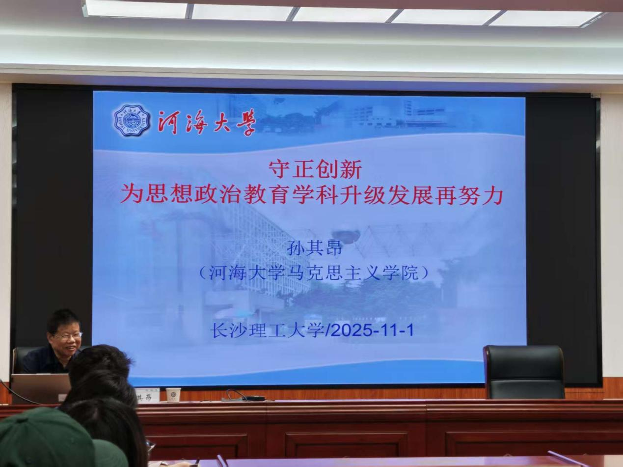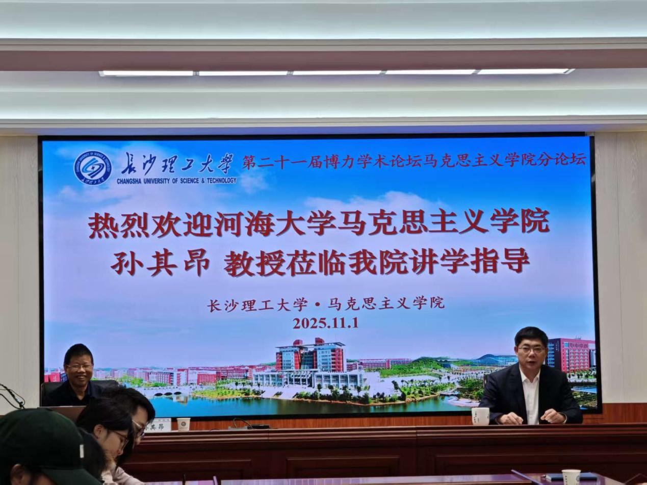 2025 年 11 月 1 日 晚7时,长沙理工大学第二十一届博力学术论坛马克思主义学院分论坛在云塘校区文科楼 B501 会议室顺利举办。论坛主讲嘉宾是河海大学马克思主义学院教授、博士生导师、国务院政府特殊津贴专家孙其昂教授,他以“守正创新,为思想政治教育学科升级发展再努力” 为主题为我院师生带来了一场精彩的学术讲座。本次分论坛由马克思主义学院院长张明海教授主持,学院部分教师及 2024 级、2025 级部分研究生共同参与。